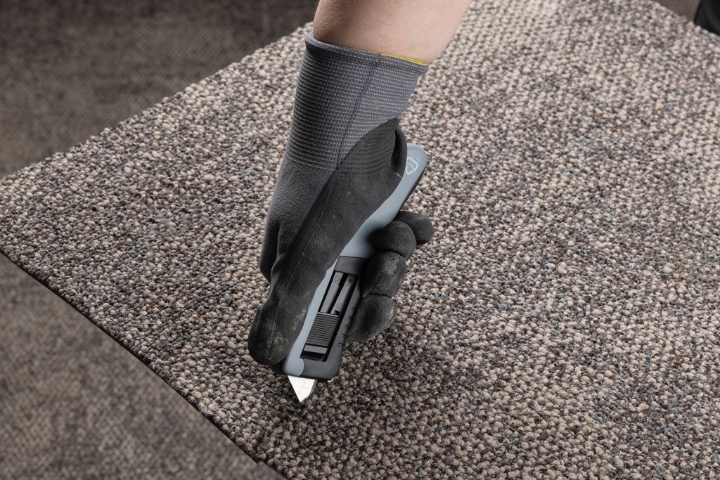 Переработанный пластик, сертифицированный RCS. Автоматический возвратный безопасный нож., серый