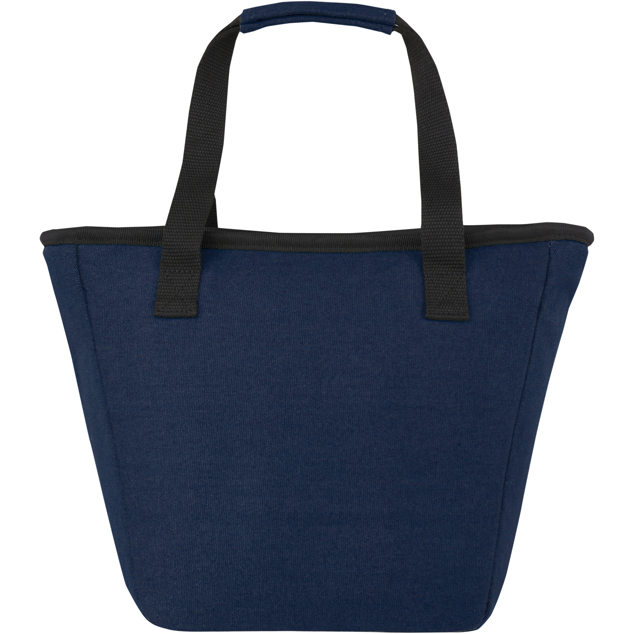 Изготовленная из высокопрочных экологичных материалов, брезента и подкладки из переработанного ПЭТ, соответствующих стандарту GRS, пищевая сумка-холодильник на 9 банок Joey имеет изолированное главное отделение с подкладкой из PEVA, пригодной для применения с пищевыми продуктами, открытый карман спереди и две усиленных вязанных ручки для удобной переноски. Декоративная металлическая пластина может придать логотипу сияние благодаря утонченному матовому покрытию.