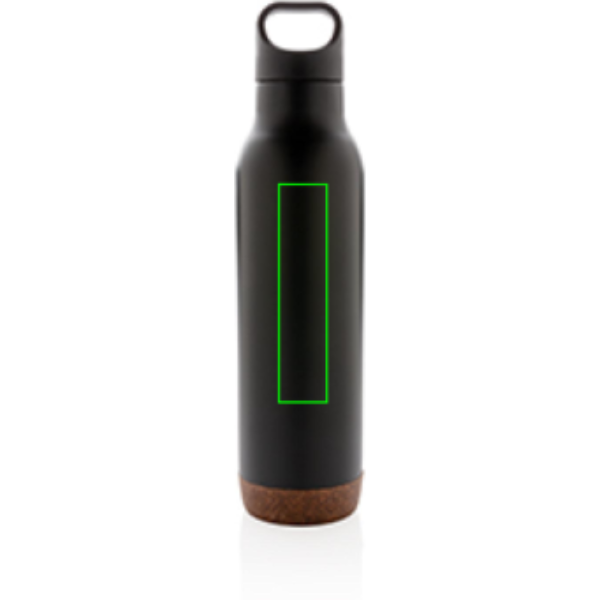 Герметичная термос с вакуумной изоляцией из прочной нержавеющей стали 304 SS внутри и 201 снаружи. Уникальная пробковая деталь на дне. Сохраняет напитки горячими до 5 часов и холодными до 15 часов. Объем: 600 мл.