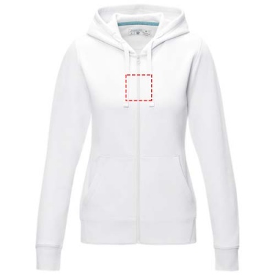 The Ruby women's organic recycled full zip hoodie – this hoodie showcases a blend of eco-conscious features that redefine modern fashion. With a soft brushed interior, it ensures a cozy feel. Made from a 280 g/m² blend of organic cotton and recycled polyester. This hoodie is designed with a fitted shape for a feminine look.