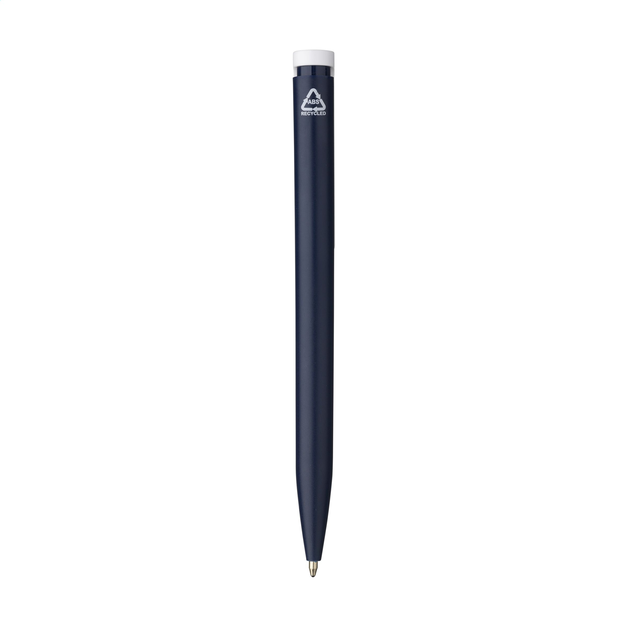 Шариковая ручка с синими чернилами из переработанного АБС. Клип/кнопка этой ручки имеет яркий цветовой акцент и предлагает место для щедрой цифровой полноцветной печати. Сертифицировано GRS. Общее количество переработанного материала: 85%.