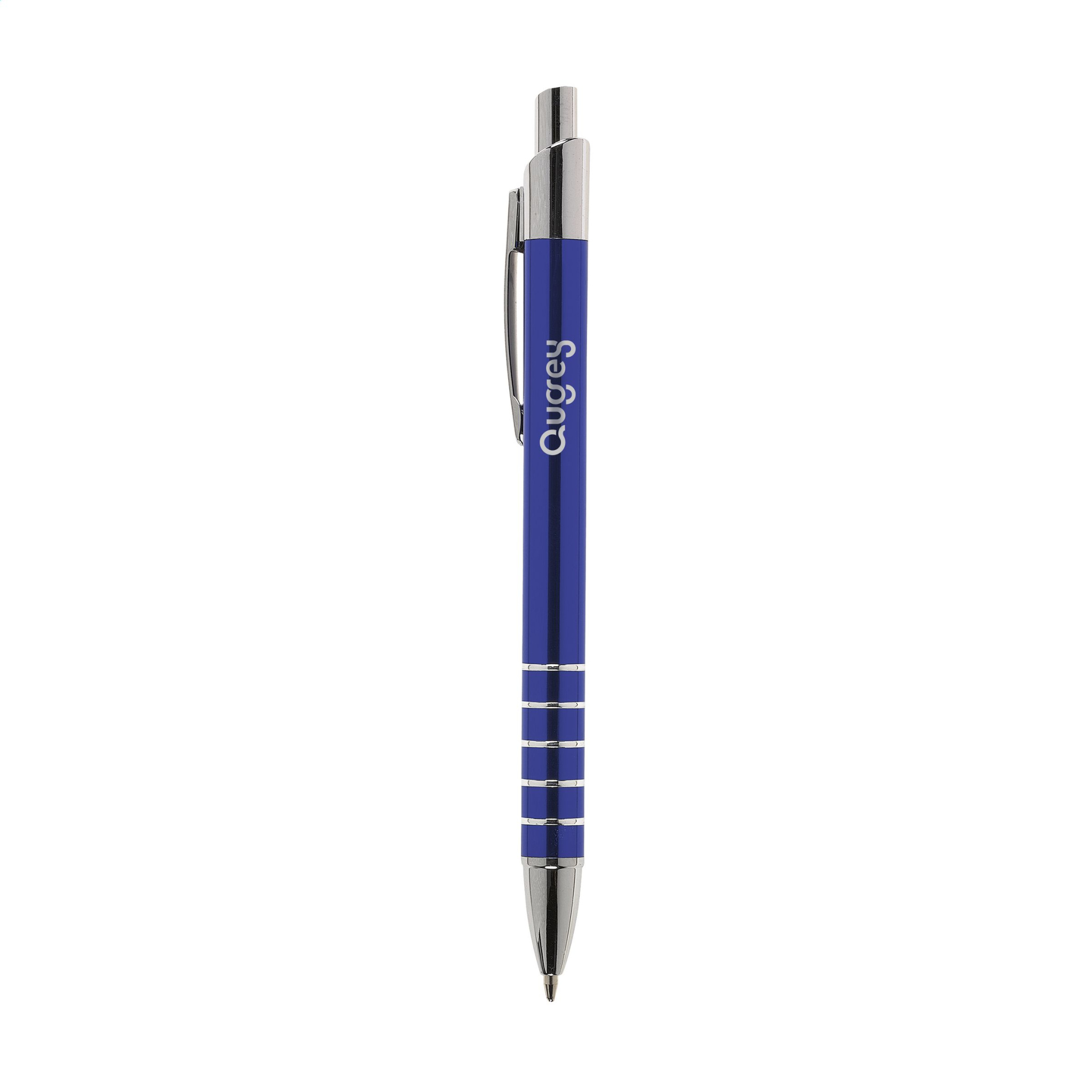Шариковая ручка из алюминия с синими чернилами и металлическим эффектом, с металлическим зажимом и отделкой.