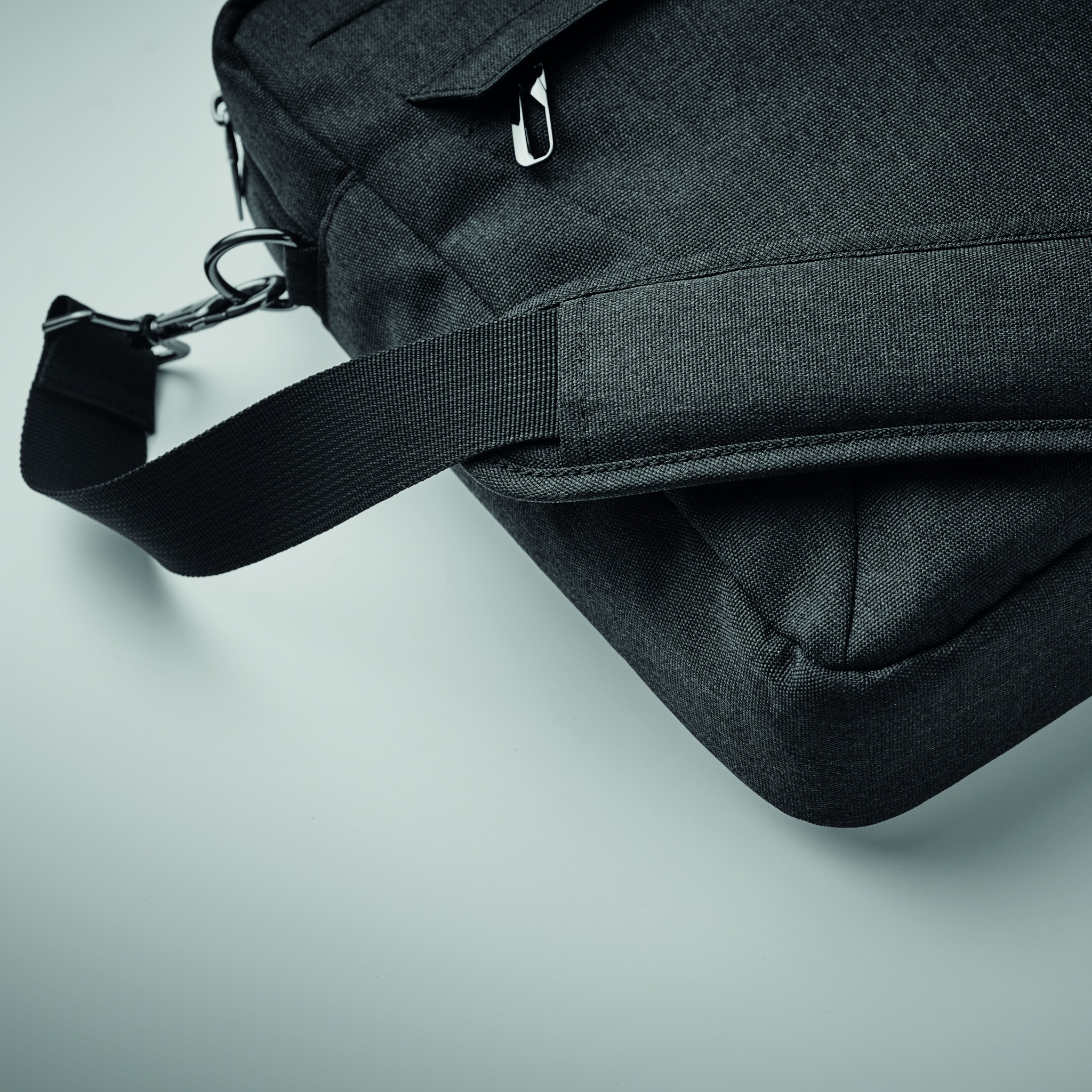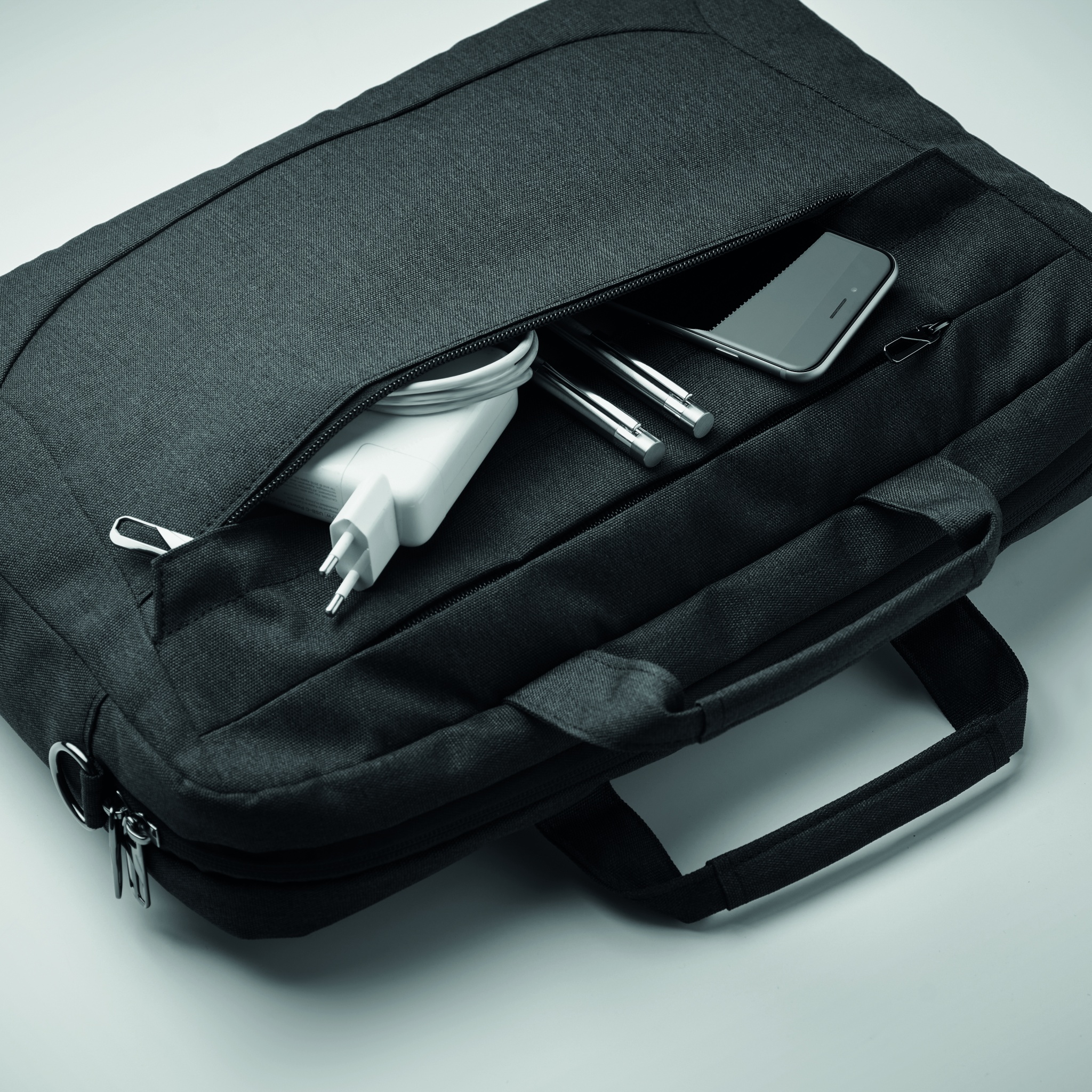 Рюкзак для ноутбука 15 дюймов из полиэстера 600D RPET. 2 основных внутренних отделения для ноутбука или планшета и большой передний карман на молнии. Дополнительный небольшой карман на молнии. Съемные и регулируемые плечевые ремни. Держатель для чемодана на обратной стороне.