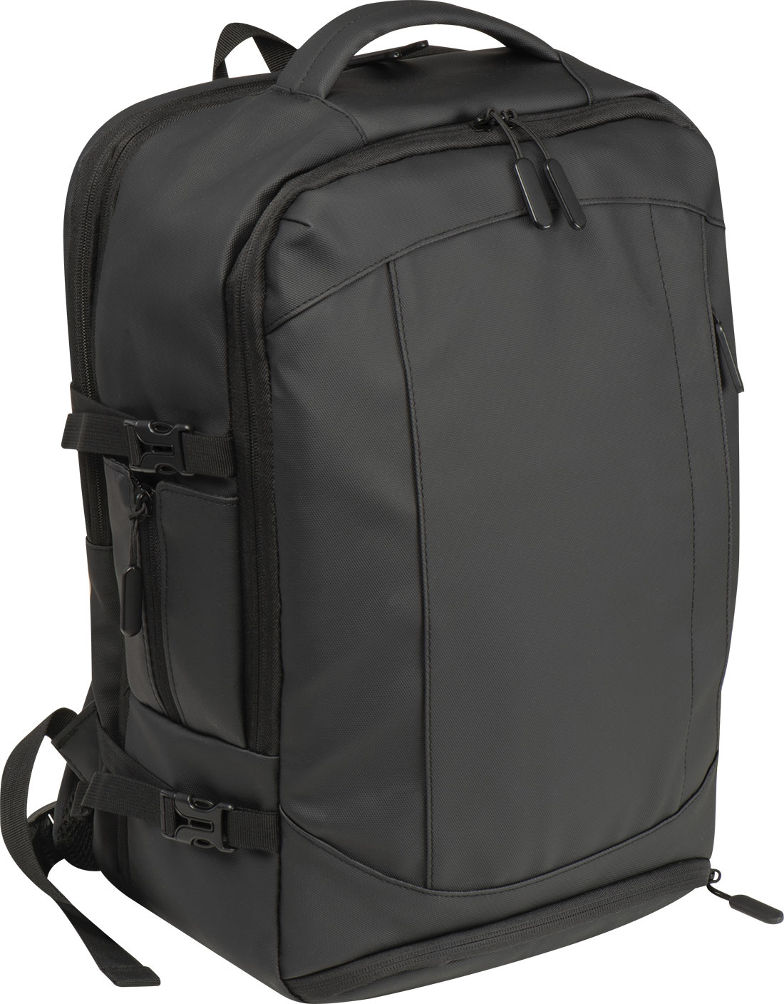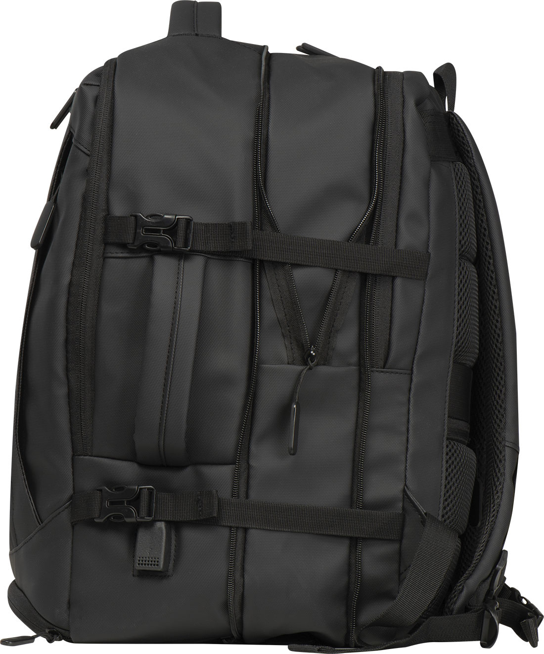Высококачественный рюкзак из полиэстера 300D. Этот водонепроницаемый рюкзак имеет несколько отделений: отделение для ноутбука с застежкой и дополнительным накладным карманом, защитный карман сзади, боковой карман с сетчатой вставкой и расширяемой молнией, отделение для мусора внизу, мягкий накладной карман под передней частью, передний боковой карман на молнии, различные внутренние накладные карманы. Кроме того, он включает в себя порт USB с кабелем, две ручки для переноски, ремень для тележки, мягкие плечевые ремни, мягкую спинку и молнию для расширения рюкзака. Идеальный компаньон не только для деловых поездок.