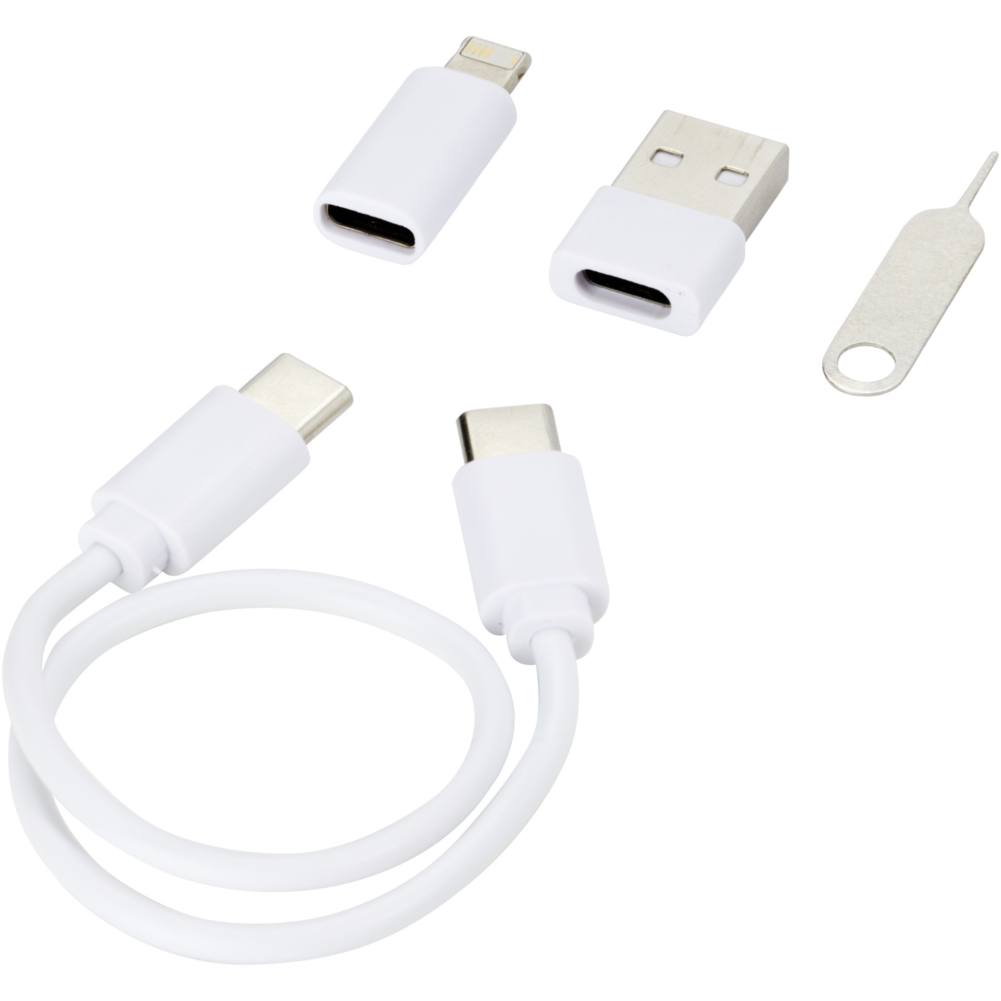 Модульный кабель для передачи данных и зарядки из переработанной пластмассы, поставляется в элегантной коробке для хранения, которая также может служить подставкой для телефона. Кабель предлагает несколько решений для зарядки: Вход Type-C и USB-A, а также выход Type-C/iOS/micro USB. Благодаря всем этим адаптерам и разъемам данный кабель позволяет заряжать большинство смартфонов, камер, блоков питания, наушников и т. д. Кабель имеет максимальную выходную мощность 2 А. Имеет специальный штифт, который пригодится в любой момент, когда вам понадобится вынуть SIM-карту из телефона. В коробке для хранения также есть место для карты памяти micro SD и нано-SIM-карты, что делает ее идеальным аксессуаром для путешествий. Длина кабеля: 26 см. Поставляется в конверте из 100% крафт-бумаги вторичной переработки.