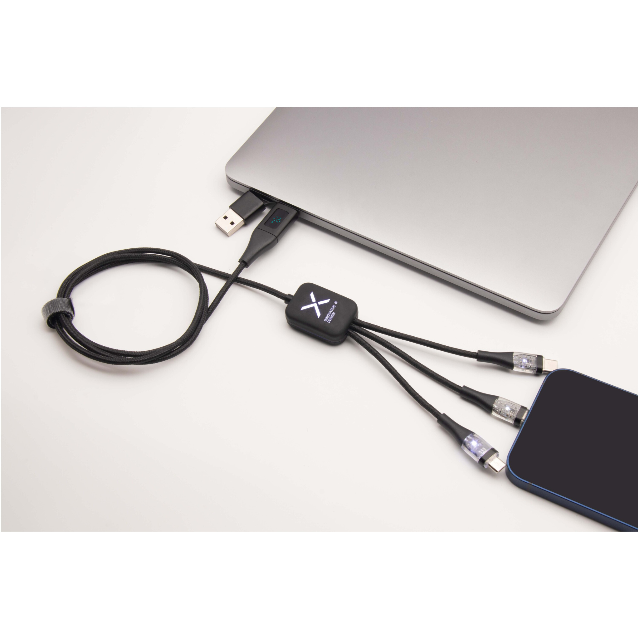 Логотрейд бизнес-подарки картинка: SCX.design C51 кабель с дисплеем для супербыстрой зарядки rPET, 60 Вт, 5-в-1