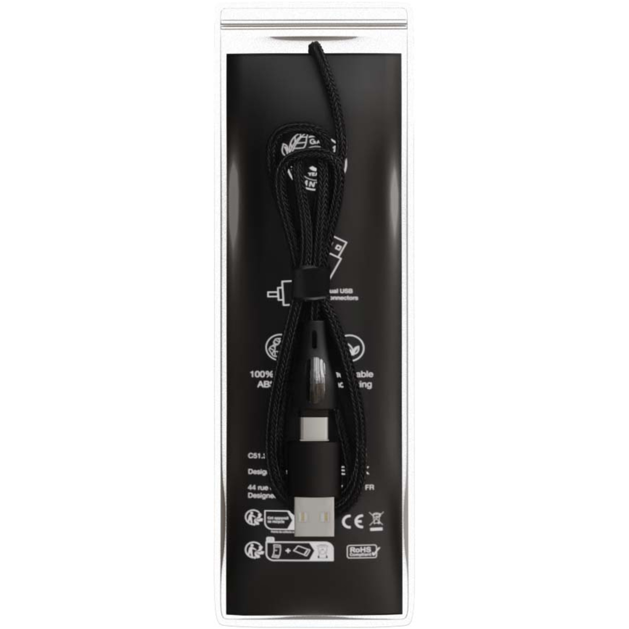 Кабель для быстрой зарядки 5-в-1 мощностью 60 Вт из переработанного ПЭТ с подсвечиваемым двусторонним логотипом и 3 разъемами (Type-C, iPhone и Android). Двойной вход USB-A + USB-C делает кабель на 100% совместимым с новейшими моделями компьютеров. Кабель может заряжать несколько устройств одновременно. Поставляется с перерабатываемым чехлом из TPU и вкладышем, напечатанным на переработанной бумаге. Длина кабеля: 1 метр