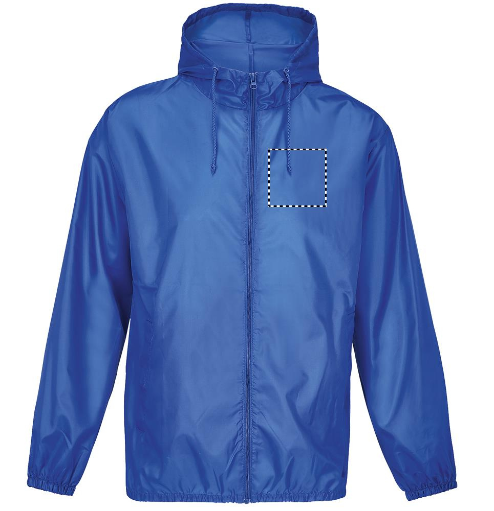 SOL'S SHIELD, UNISEX WATER-REPELLENT WINDBREAKER, 100% recycled polyester - water-repellent, Zip opening, Hood with drawstring, Elasticated cuffs and bottom, 2 pockets with Velcro fastening, Foldable into its pocket, Comfortable fit. About sizes matching, please refer to the size chart in the product documentation section.