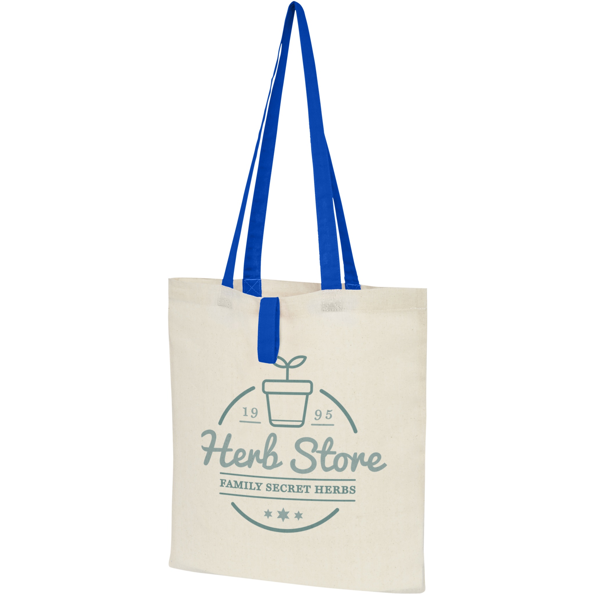 Складная эко-сумка Nevada из хлопка плотностью 100 г/м², Натуральный / Королевский синий