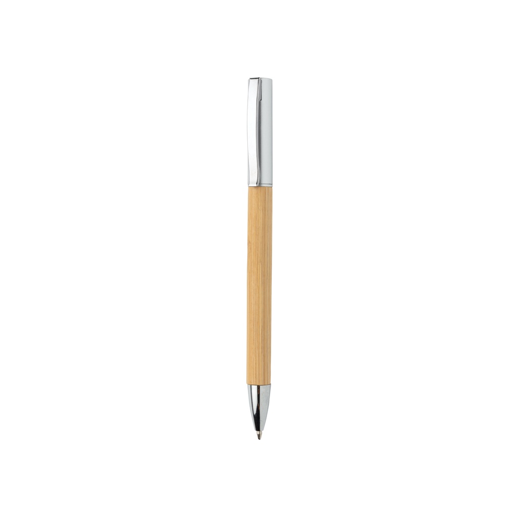 Сочетайте современный стиль с превосходным комфортом письма. Эта ручка с поворотным механизмом изготовлена из бамбука и АБС с матовым металлическим покрытием на колпачке. Ручка поставляется с синими немецкими чернилами Dokumental®, длина письма 1200 метров.