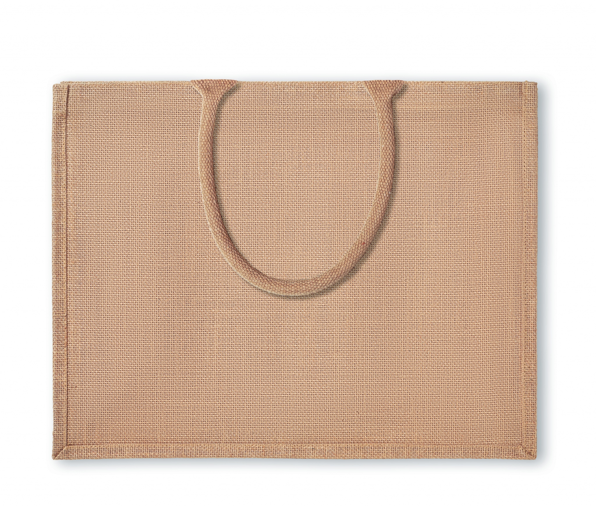 Сумка для покупок из джута с элементами из хлопка. Внутрення ламинация. Короткие ручки.
