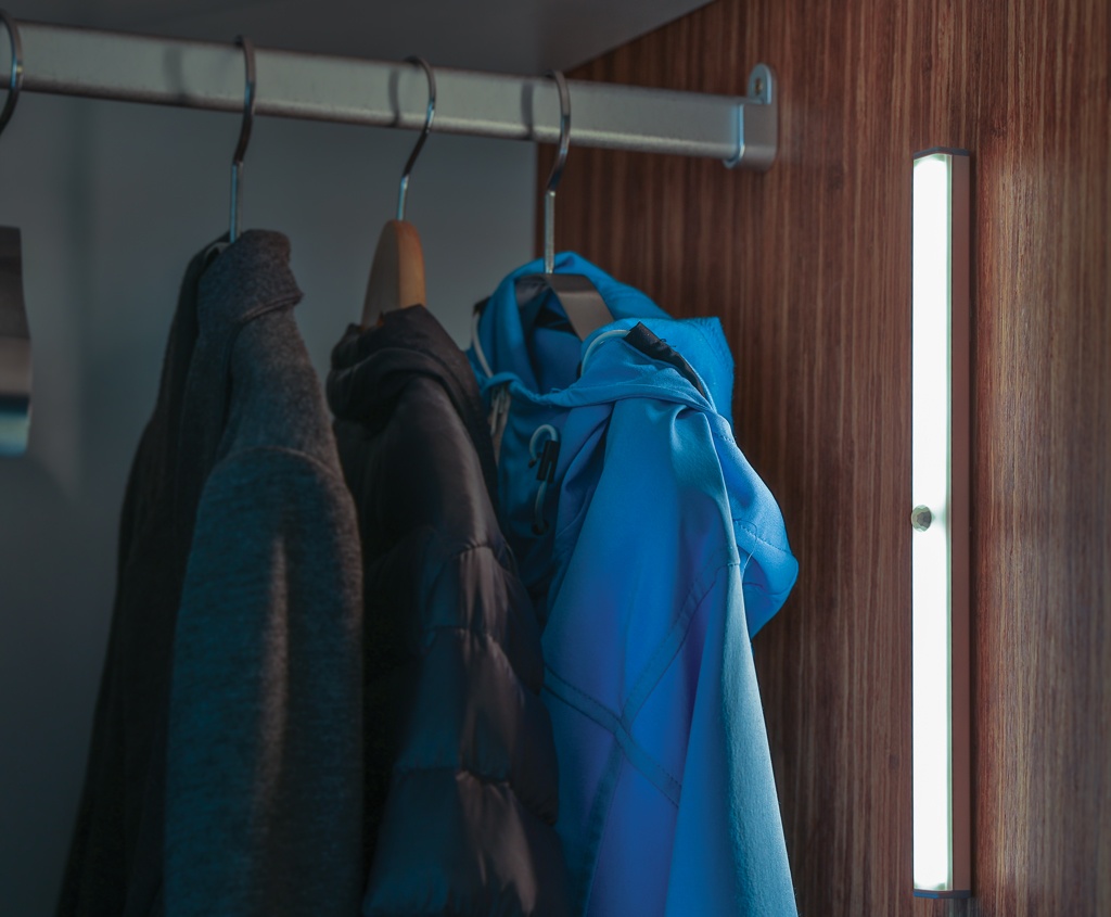 Датчик движения из алюминиевой светодиодной ленты с 20 светодиодами. С магнитной задней панелью для крепления к металлическим поверхностям. Включает 2 магнита с наклейками для крепления к немагнитным поверхностям. Идеально подходит для использования в гараже, над столом, в коридоре или в шкафу. Два режима: непрерывное или автоматическое обнаружение датчика. Светодиодный светильник включится при обнаружении движения и выключится через 35 секунд, если больше не будет обнаружено движения. С литиевой батареей емкостью 500 мАч для непрерывной работы до 3,5 часов и расстоянием датчика до 3 метров. 30 люмен. Зарядка через USB с помощью входящего в комплект кабеля micro USB без ПВХ.