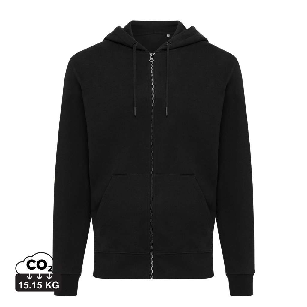 Толстовка с капюшоном Iqoniq Abisko из переработанного хлопка с застежкой-молнией, черный