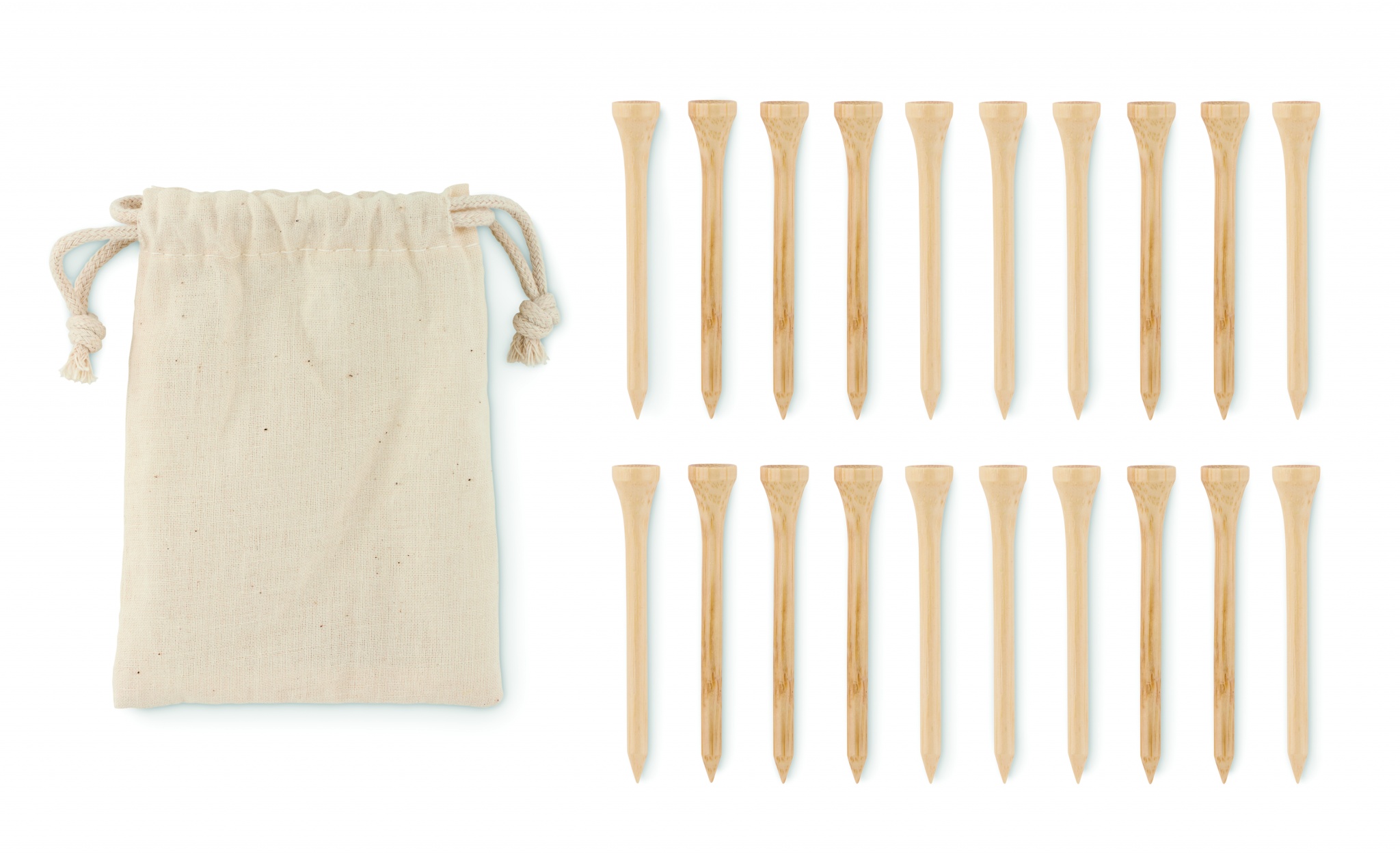 Набор тройников для гольфа из бамбука в мешочке из органического хлопка на шнурке.