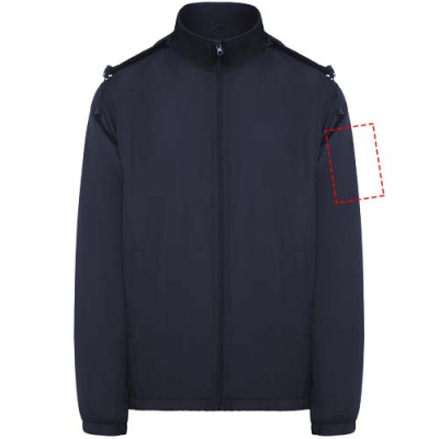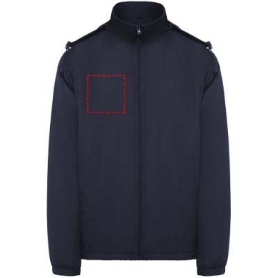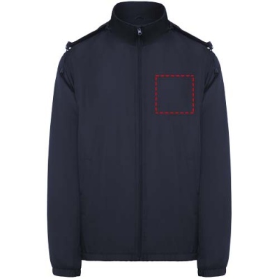 Легкая водонепроницаемая куртка. Высокий воротник и складной капюшон с регуляторами. Подкладка из микрофлиса. Молния спереди и защита для подбородка. Эластичные манжеты. Два боковых кармана на молнии. Внутренний левый нагрудный карман. Съемная этикетка. Водонепроницаемая. Ветрозащитная.