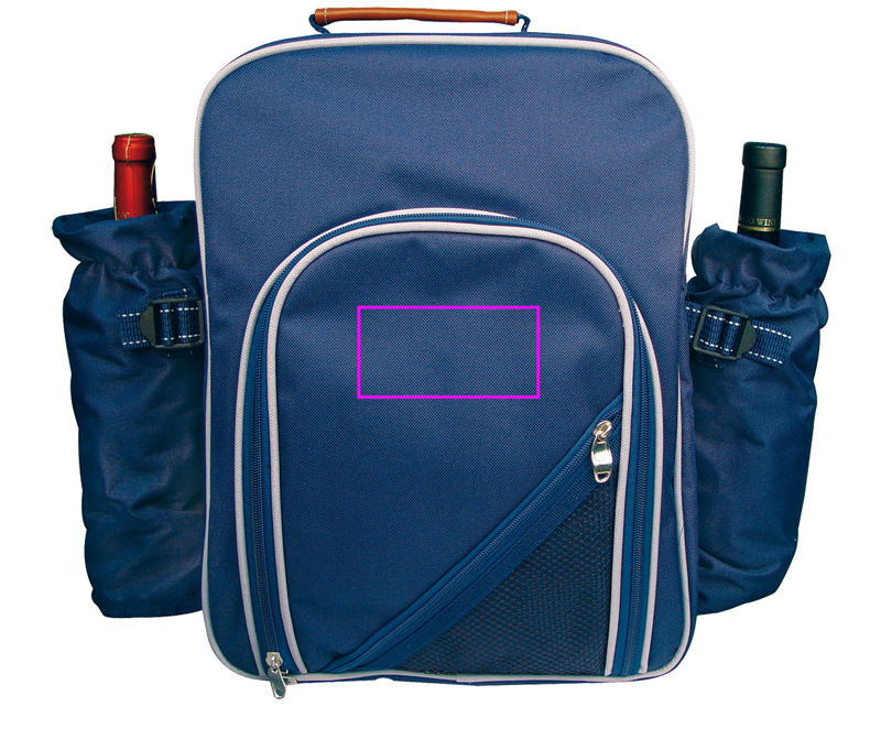 Расслабьтесь на природе! Наслаждайтесь уютным пикником на 4 персоны с этим высококачественным полиэстеровым рюкзаком для пикника. Он содержит просторное охлаждающее отделение сзади для сохранения свежести продуктов, два охлаждающих отделения для бутылок по бокам, множество принадлежностей в переднем отделении, таких как пластиковые тарелки и стаканы, столовые приборы, небольшой пластиковый поднос, штопор, солонка и перечница и нож. Переднее отделение обеспечивает дополнительное место для хранения. Мы разместим ваш логотип на переднем отделении.