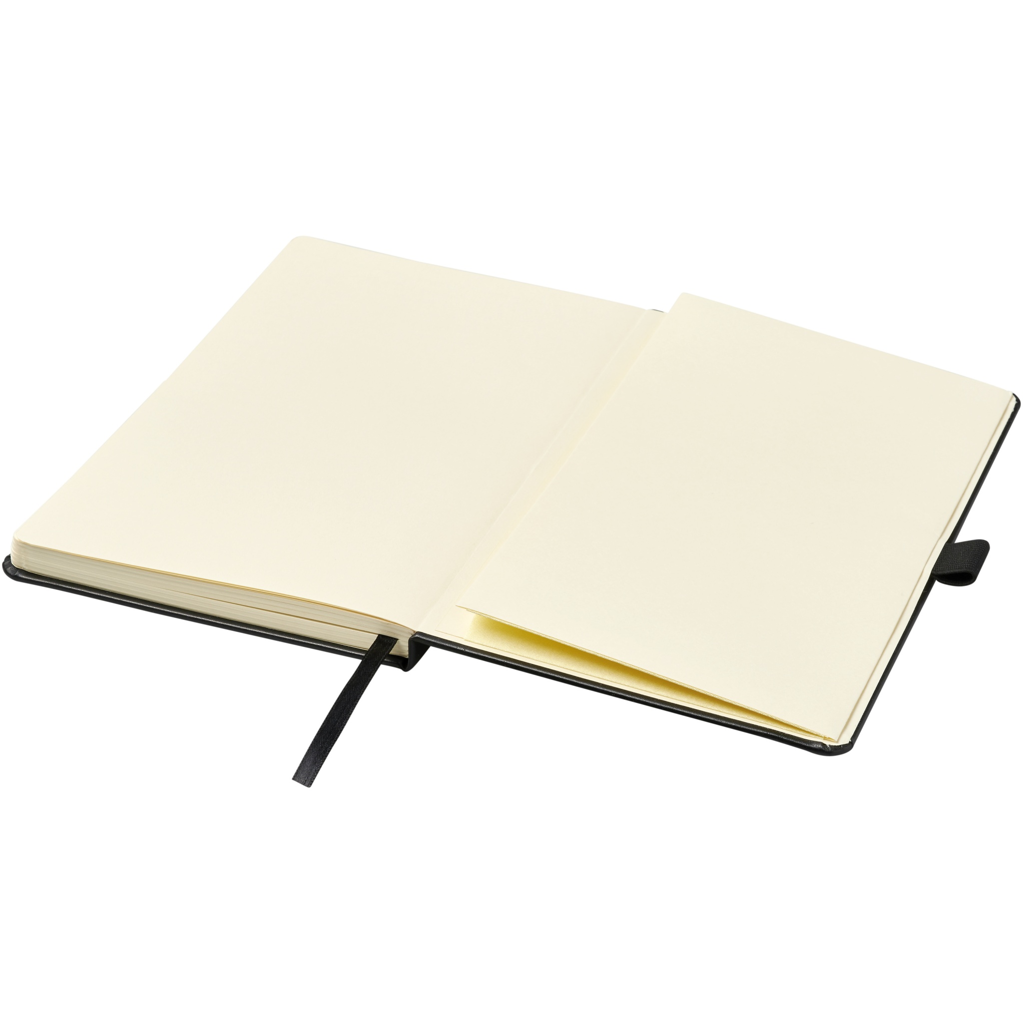 Записная книжка из искусственной кожи формата A5 (14,2 x 21,4 см) с резинкой, лентой-закладкой, петлей для ручки и задним карманом. Состоит из 96 листов линованной бумаги кремового цвета плотностью 70 г/м2 и поставляется в белом футляре Journalbook.