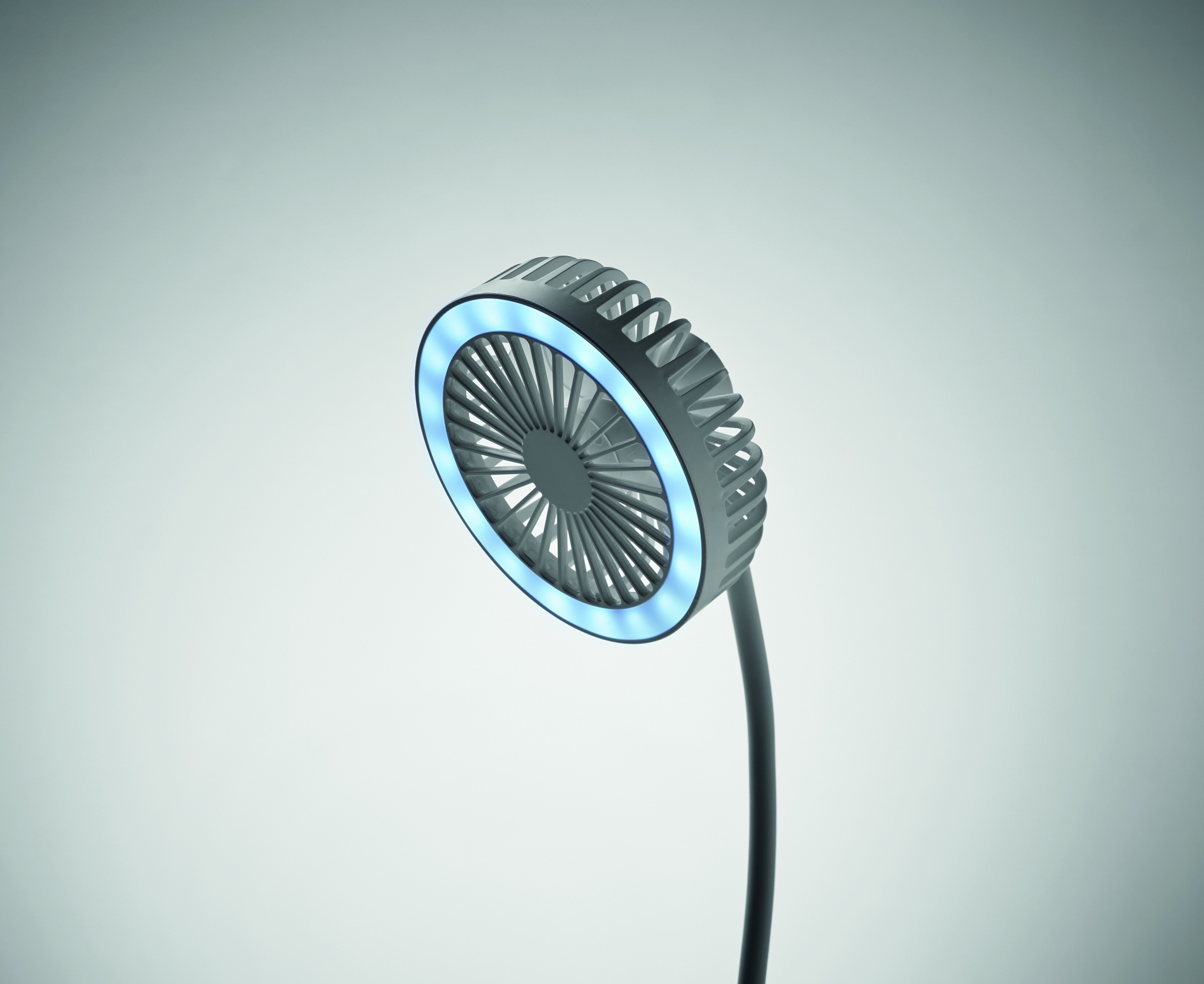 Настольный пластиковый вентилятор с 3 настройками скорости и беспроводным зарядным устройством 10 Вт. Выход: DC 9V/1.1A (10 Вт) для быстрой зарядки. Совместим с последними моделями Androids, iPhone® 8 и новее.