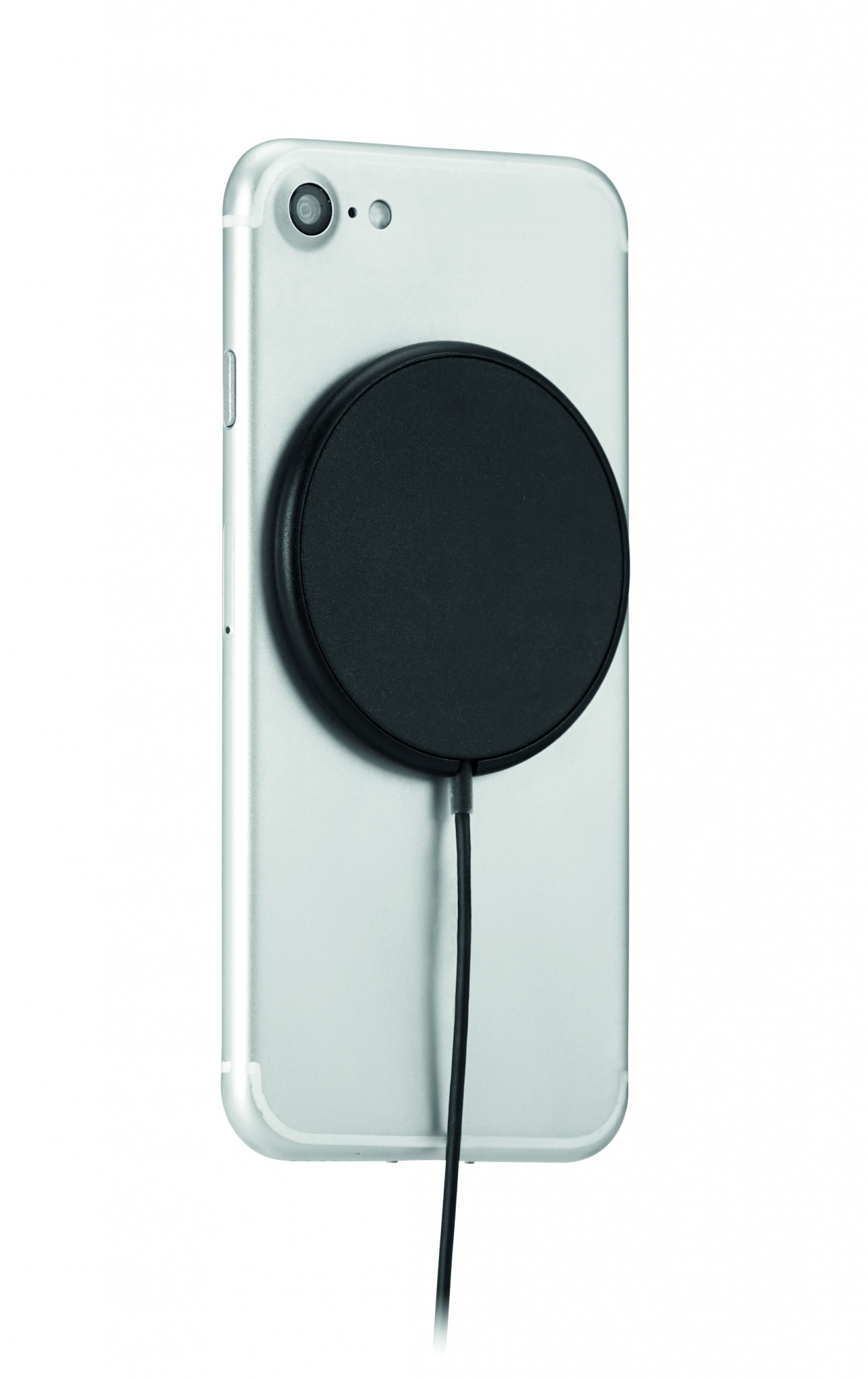 Беспроводное зарядное устройство на магните из ABS. Выход: 9В АС/1,1А(10 Вт) для быстрой зарядки. Совместима с iPhone® 12 и новее. Есть еще доп. магнитное кольцо для б/п зарядки других смартфонов