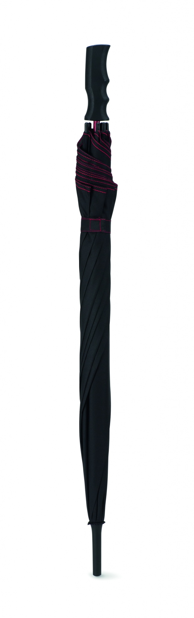 Зонт полуавтомат устойчивый к ветру со стержнем из стекловолокна и черной пластиковой ручкой. Длина в сложенном виде 23 см.