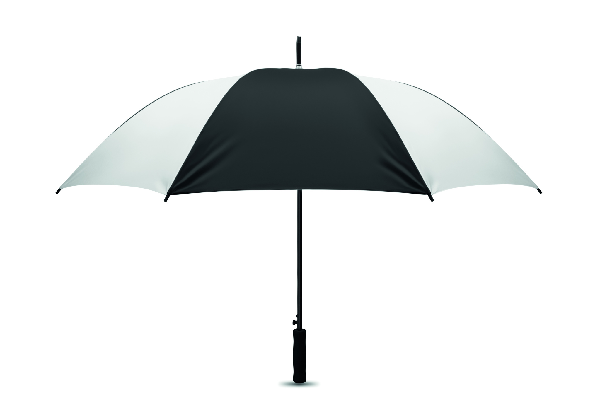 Зонт автоматический из полиэстера с пластиковыми наконечниками на спицах.