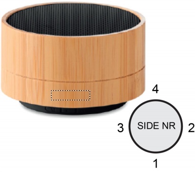 Trådlös högtalare i ABS med bambuhölje och LED-indikator. Högtalaren har ett laddningsbart 450 mAh Li-ion batteri. Inkluderar en SD-port och en AUX/USB-kabel. Handsfree ringfunktion. Output: 3W, 3 Ohm och 5V. Speltid ca 3 timmar på en laddning.