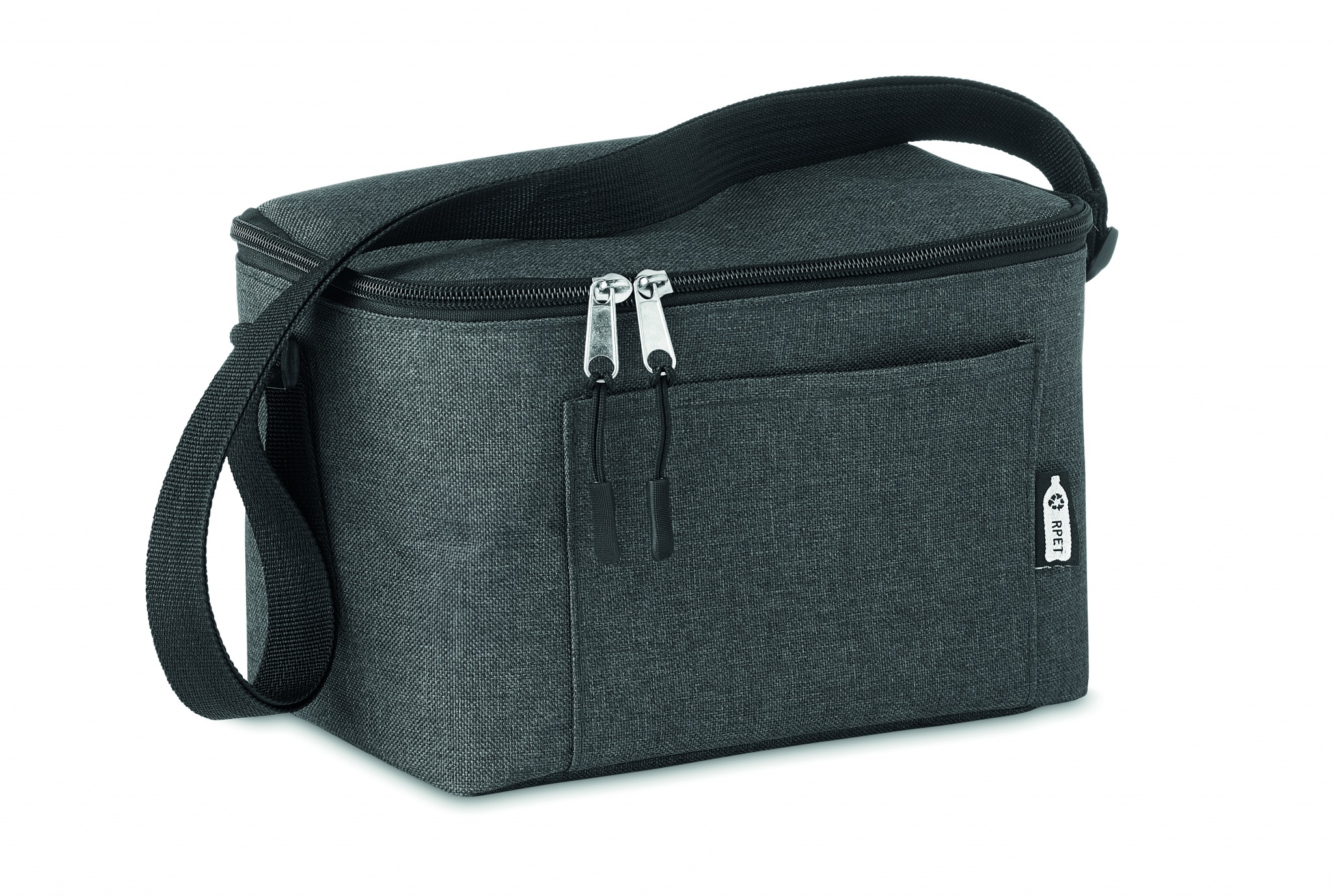 Kylväska för 6st burkar i 2 färgad 600D RPET med frontficka. Isolations material: 0.15mm PEVA + 3mm foam.