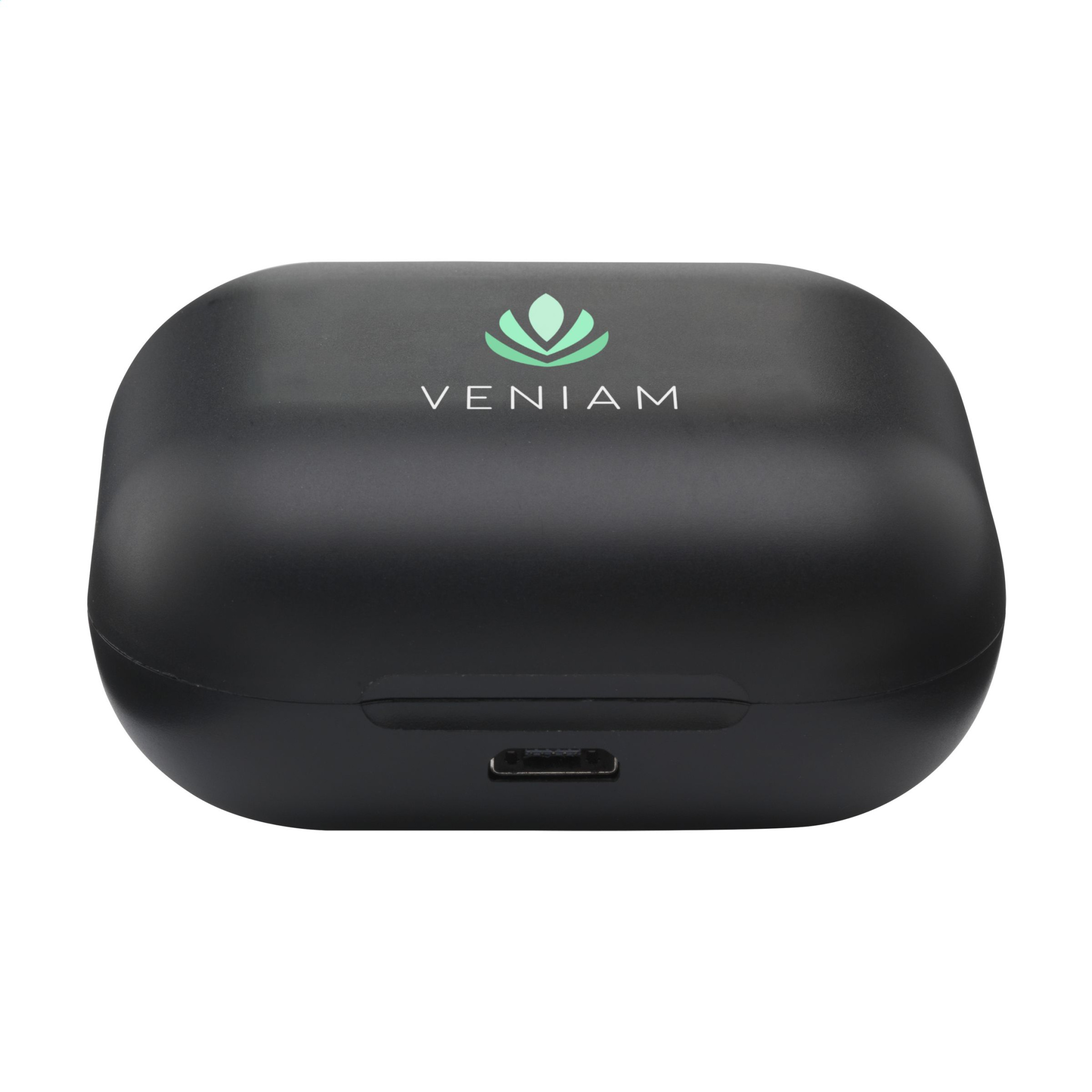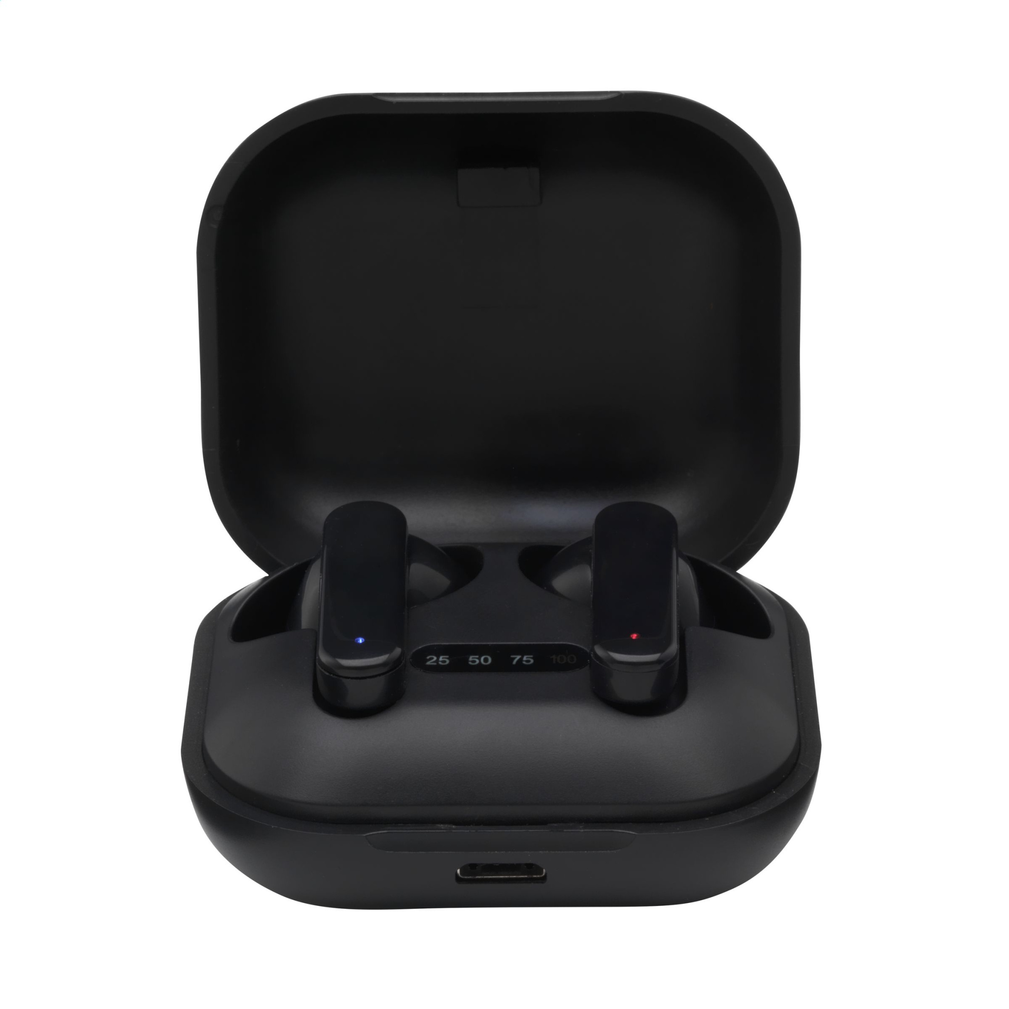 Logotrade kampanjprodukter bild: Aron TWS trådlösa hörlurar i laddningsfodral