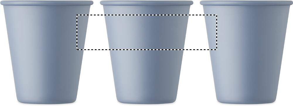 Återanvändbar enväggsmugg i PLA-majs. Volym: 200 ml. Eftersom detta är en enkelväggig mugg kan värmeöverföring fortfarande förekomma.