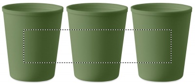 Dubbelväggsbägare med lock i återvunnen PP. Volym: 300 ml.