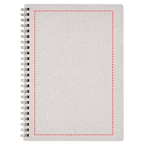 Wire-o-anteckningsbok i storlek A5 är tillverkad av ett ansvarsfullt anskaffat överdrag som innehåller bomullsrester (15 %) och återvunnet avfall från kasserade produkter (40 %). Innehåller 80 blad, 80 g/m2 100 % ansvarsfullt anskaffat papper med ett prickat rutnät. Den prickade layouten kombinerar fördelarna med sidor som är linjerade, tomma och rutade och tillhandahåller både struktur samt stimulerar kreativitet vilket gör denna anteckningsbok lämplig för flera olika typer av användare. Tack vare dess spiraler kan anteckningsboken ligga platt men även enkelt vikas ihop. Tillverkad i Italien.