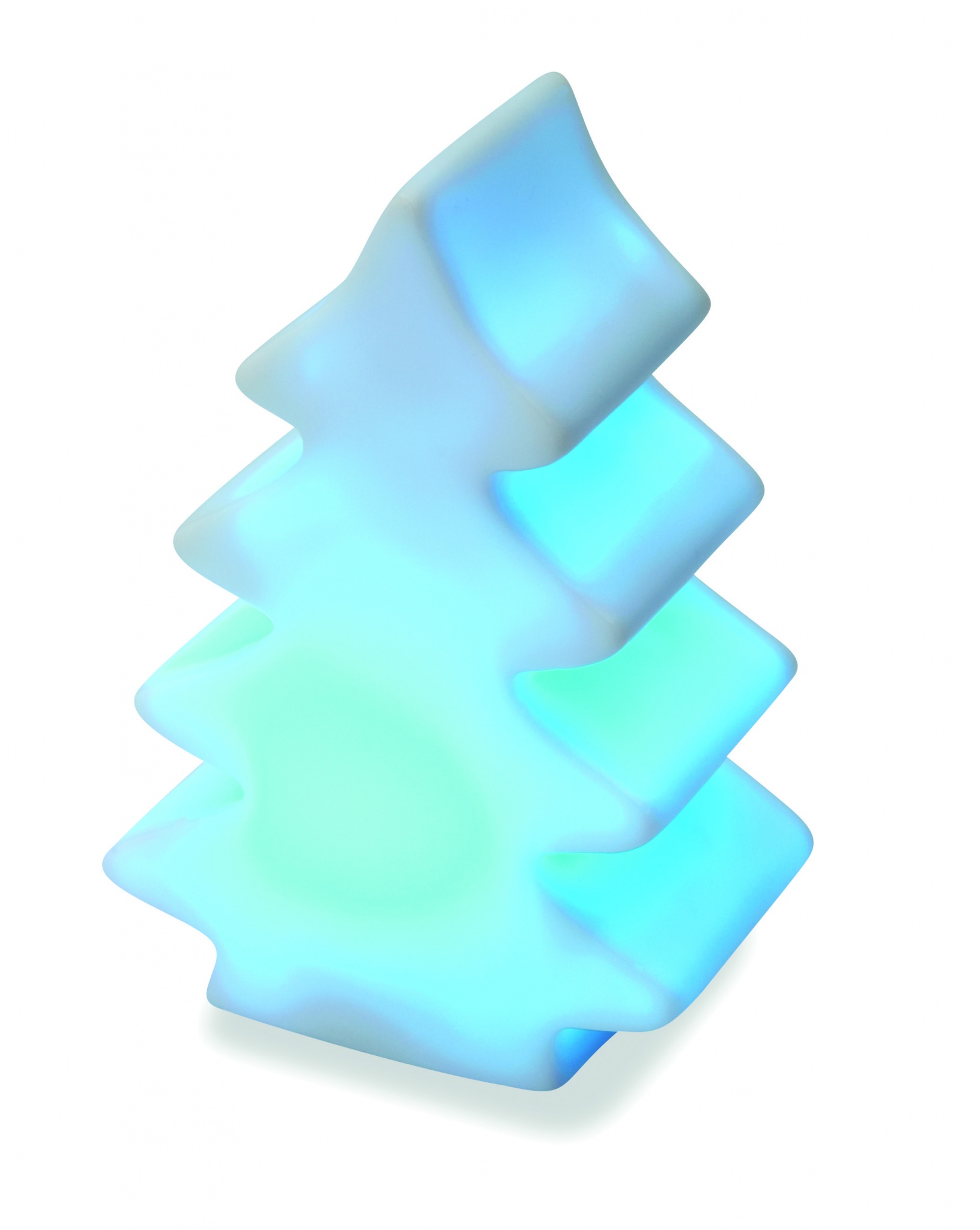 LED färgskiftande lampa i julgransform. Färger: vit, blå, lila, rött, gult och grönt. Tillverkad i PVC. 3 st LR44 batterier ingår.