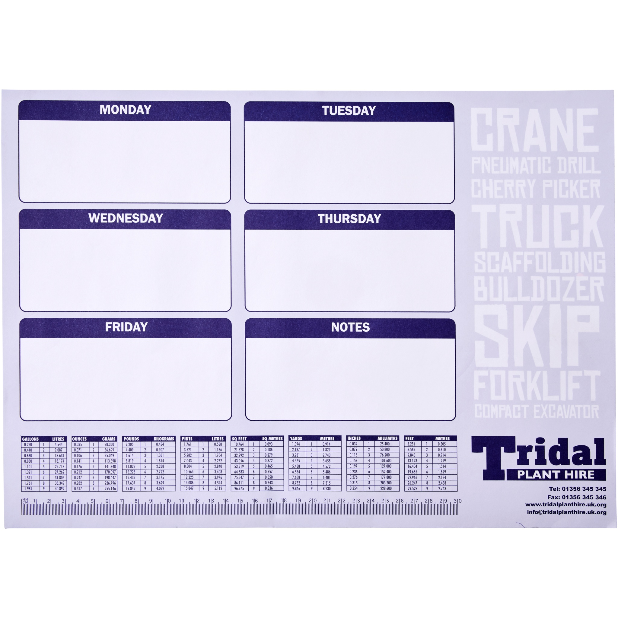 Vit A2 Desk-Mate® anteckningsblock. Standardmodell Innehåller 50 ark 80 g / m2 papper. Fullfärgstryck tillgängligt för varje ark. 2 storlekar tillgängliga: 25/50 ark.