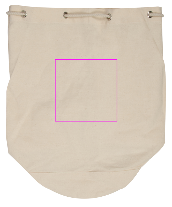 Naturlig, miljövänlig kappsäck i bomull med dragsko, som även fungerar som axelrem. Vi trycker din logotyp på ena sidan.