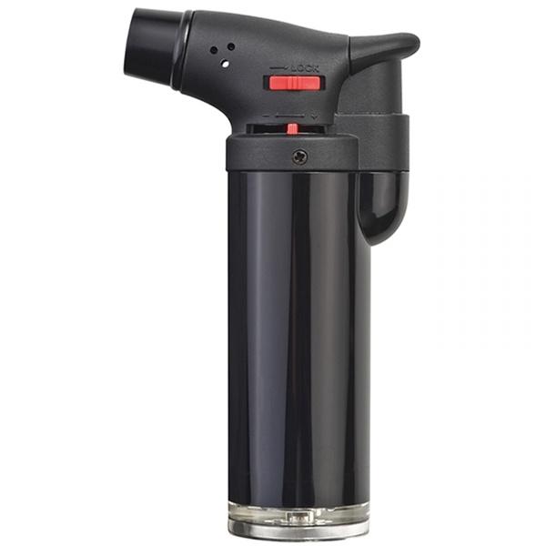 Påfyllningsbar "creme brulee" ficklampa med reglerbar lågstorlek och barnsäkerhet. Vi kommer att trycka din logotyp på skaftet.