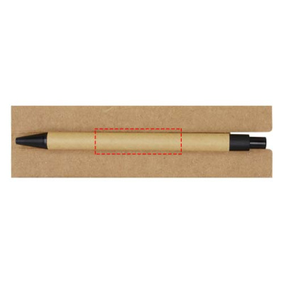 Självhäftande anteckningsblock med kulspetspenna. Anteckningsblocket har 30 ark vitt papper 70 g/m2 linjerat papper (8 x 12 cm). Den har också 25 flerfärgade (5 x 1,2 cm) och 25 gula (7,5 x 7,5 cm) klisterlappar, båda med 70 g/m2 papper. Kulspetspennans pennkropp är tillverkad av återvunnet papper. Bläckfärg: Svart. Skrivlängd: 1000 meter. NIB-storlek: 1,00 mm.