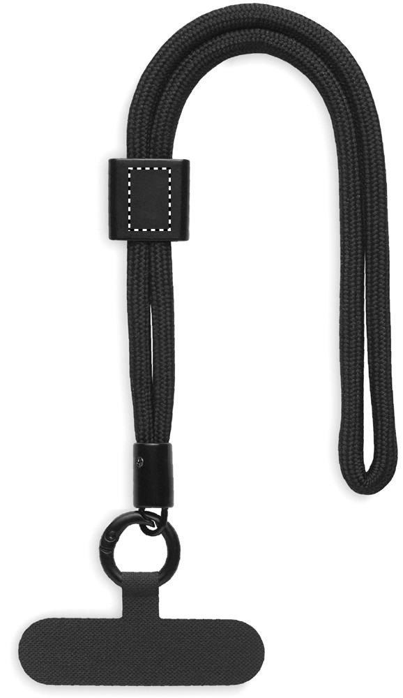 Justerbar handledsrem och hållare för telefon i RPET-polyester. Längd 25 cm.