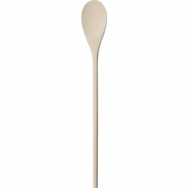 Miljövänlig matlagningssked av trä, ett hållbart och hållbart allsidigt vapen i alla kök. Logotypen appliceras genom gravyr på stilen.