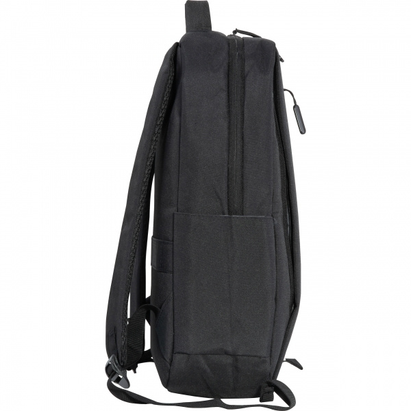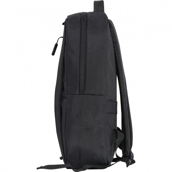 Laptopryggsäck tillverkad av polyester för 15-tums bärbara datorer. Den har två framfack med dragkedja, ett stort huvudfack med vaddering för laptopen, olika fickor, vadderade axelremmar, ett bärhandtag och en rem för att fästa på en trolley. Din logotyp är applicerad på framfacket.