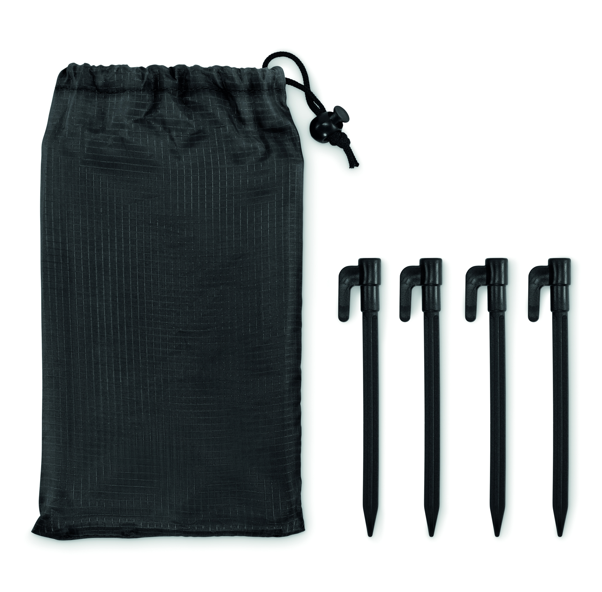 Lätt strandmatta i 210T polyester som mäter 200x210 cm. Inklusive 4 svarta krokar och en matchande påse för enkel transport.