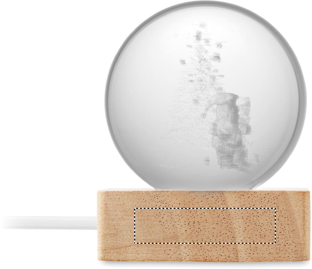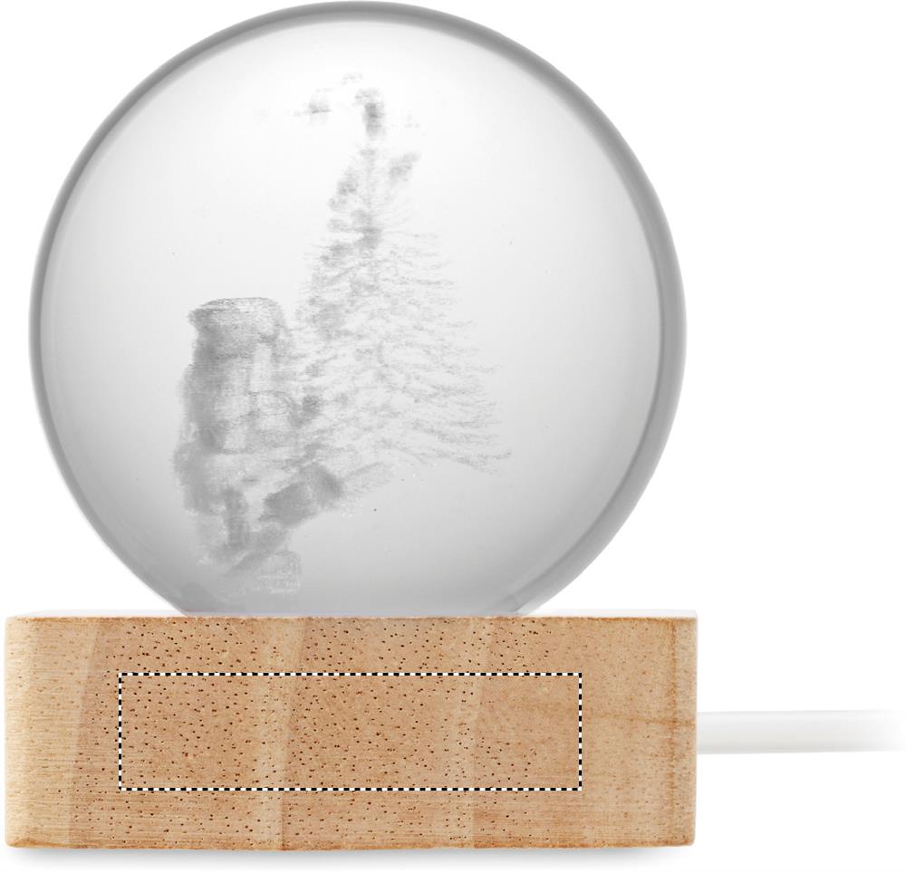 Julkula i kristall med LED-ljus (100 lumen) och julmönster inuti på bas av gummiträ. USB-laddningskabel (90 cm) ingår.