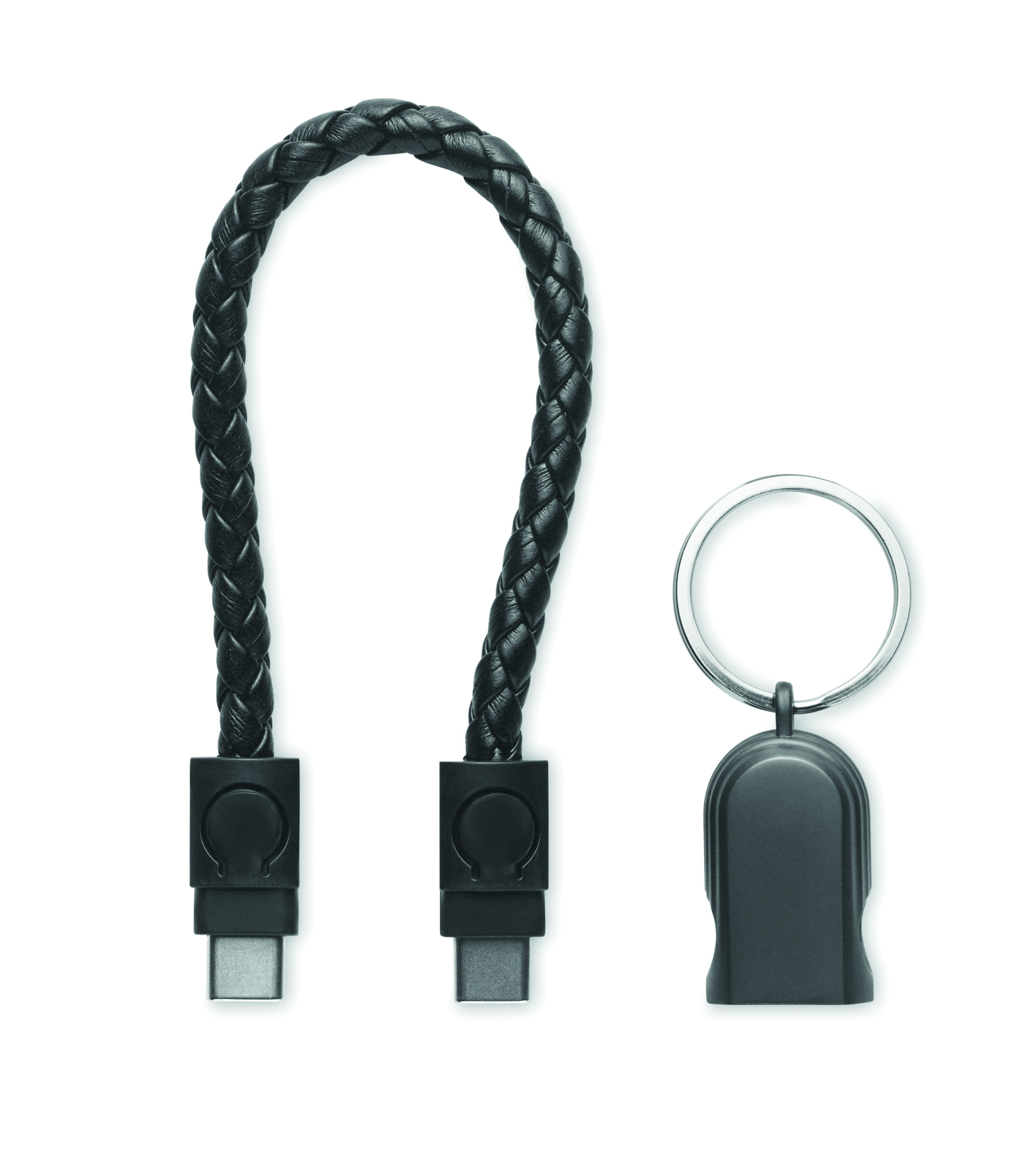 Nyckelring med laddnings- och dataöverföringskabel 60W, typ-C till typ-C i PU med flätad detalj i zinklegering.