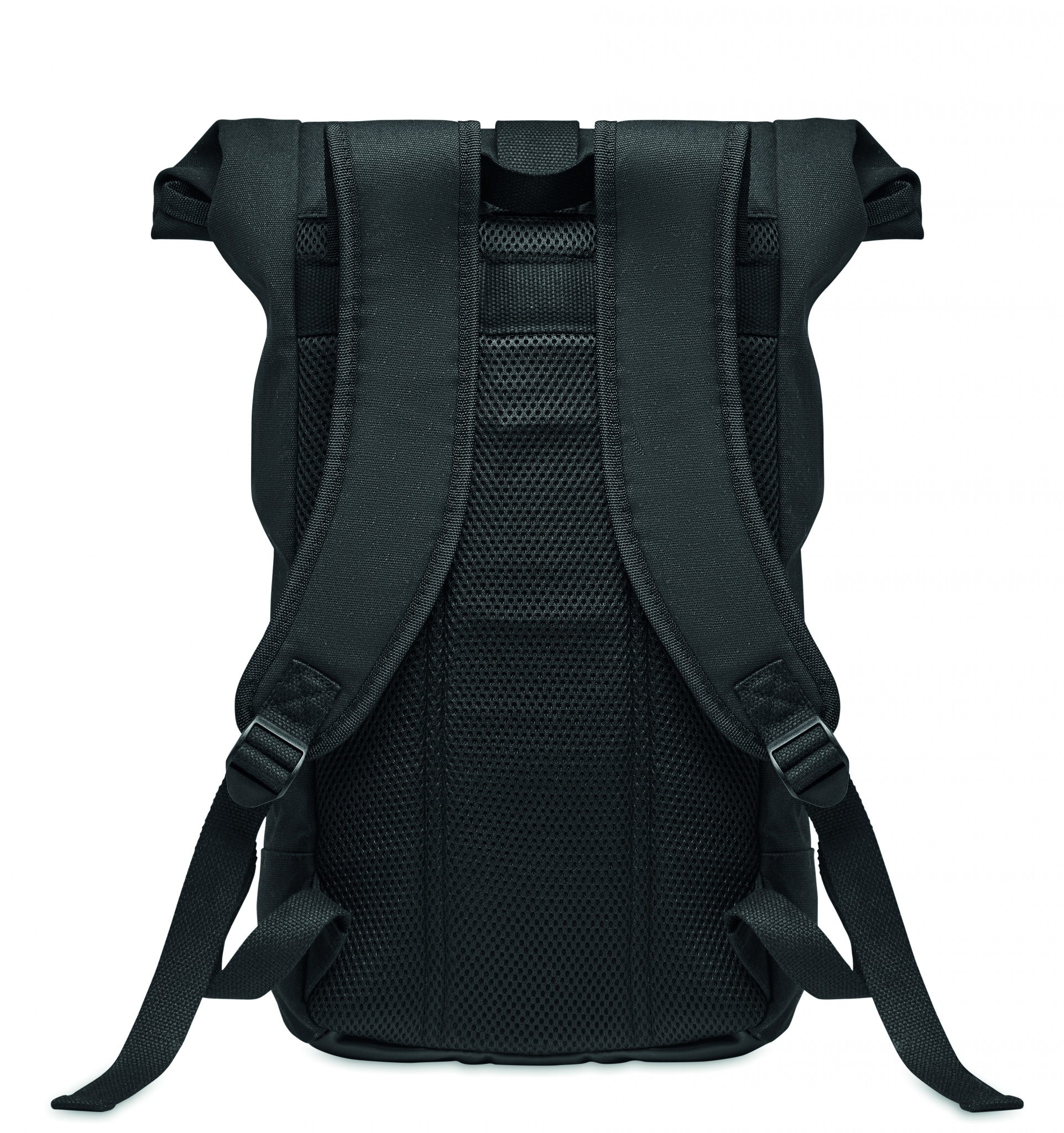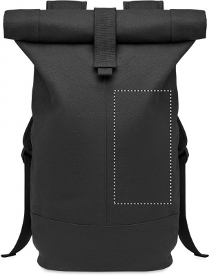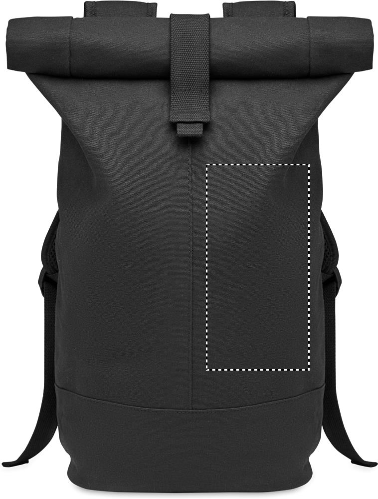 Ryggsäck i högkvalitativ 340 gr/m² tvättad canvas med vadderad ryggförstärkning. Stängs genom att rulla topen. Foder i RPET 210D.