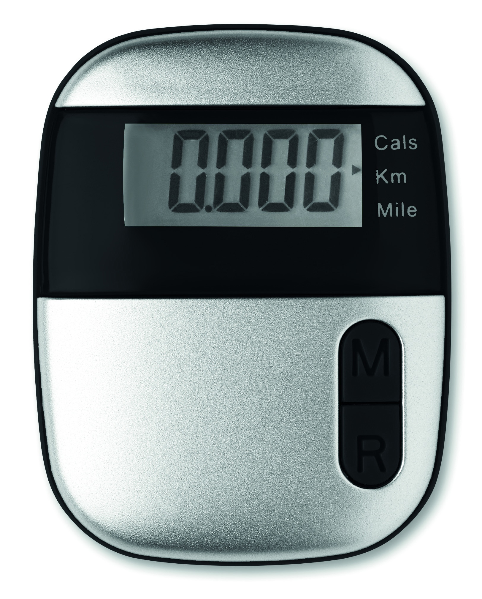 Stegräknare med klipp i ABS plast. Räknar steg, kaloriförbrukning och distans (miles och kilometer). Drivs av ett cellbatteri som ingår. Fungerar bäst när du vill mäta stegen under en specifik promenad och rekommenderas ej att möta stegen under en hel dag.