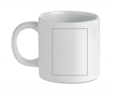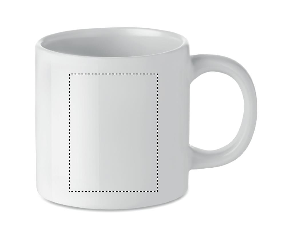 Keramik mugg, 200 ml med speciell beläggning för sublimerings tryck. Individuellt förpackade i vit låda. Med sublimeringstyck kan du trycka bildmotiv runt hela muggen.