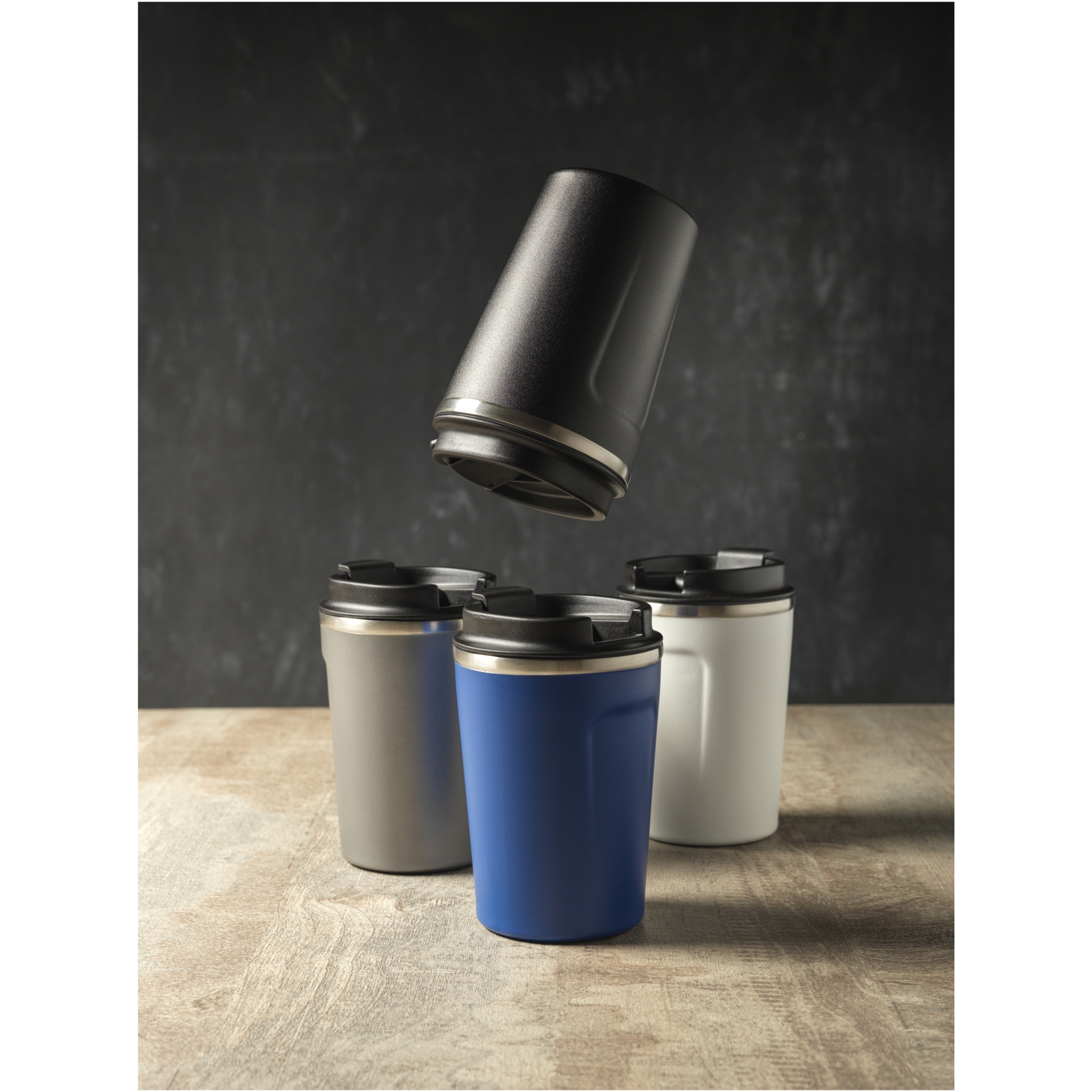 Thor 360 ml läckagesäker vakuumisolerad termosmugg i koppar. Konstruktion med dubbelvägg och vakuum i rostfritt stål med kopparisolering som håller din dryck kall i 24 timmar och varm i minst 8 timmar. Konstruktionen förhindrar också kondens på utsidan av termosen. Läckagesäkert skruvlock. Trendig och tålig pulverlackering. Volymkapacitet 360ml. Levereras i en presentförpackning av Avenue. Rostfritt stål.