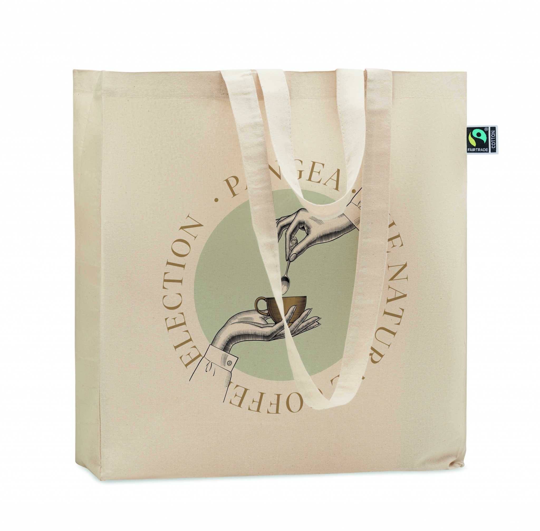Kasse i Fairtrade-bomull med långa handtag och vikter. 180 gr/m².