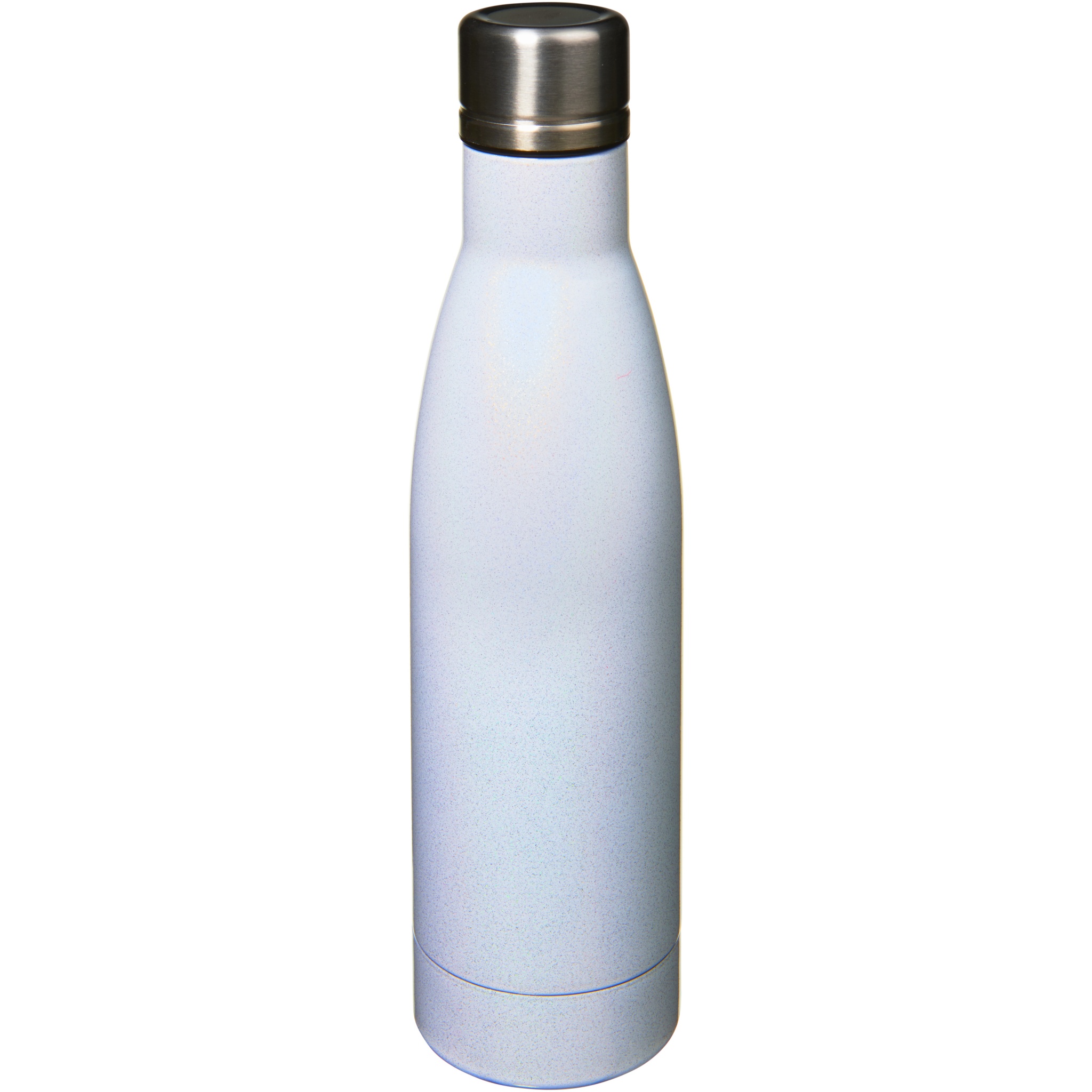 Håll dina drycker varma i 12 timmar eller kalla i 48 timmar med den kopparvakuumisolerade flaskan Vasa Aurora. Flaskan har dubbla väggar och är tillverkad av rostfritt stål med vakuumisolering och en kopparpläterad innervägg. Detta innebär att din dryck hålls rykande varm eller iskall beroende på dina behov. Flaskan har en psykedelisk och skimrande yta, är BPA-fri och testad och godkänd enligt tysk lagstiftning om livsmedelssäkerhet (LFGB) och för ftalatinnehåll enligt REACH. Volymkapacitet: 500 ml. Levereras i presentförpackning.